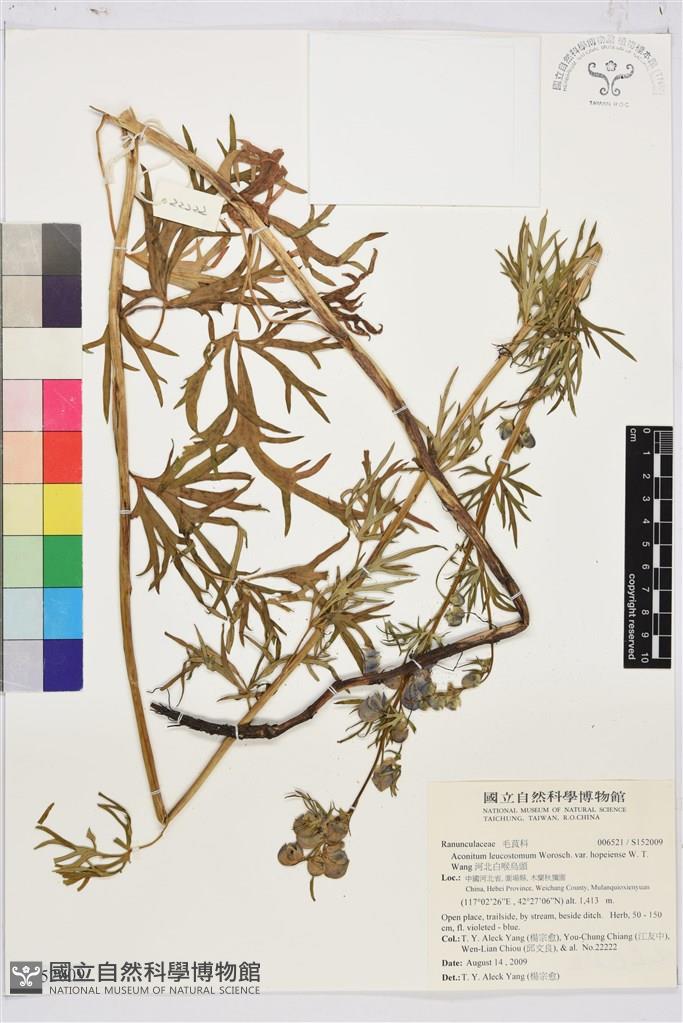 Scientific Name: Aconitum leucostomum Worosch. var. hopeiense W. T. Wang