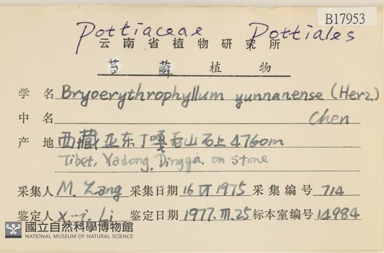 Scientific Name:Bryoerythrophyllum yunnanense