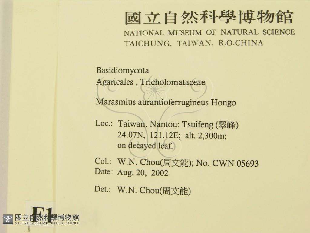Marasmius aurantioferrugineus Hongo
