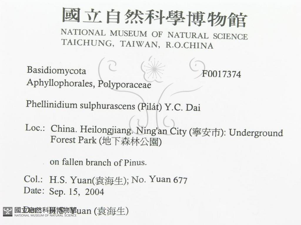 Phellinidium sulphurascens (Pilát) Y.C. Dai