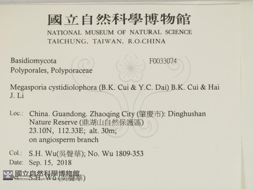 Megasporia cystidiolophora (B.K. Cui & Y.C. Dai) B.K. Cui & Hai J. Li