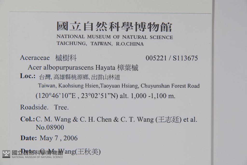 Scientific Name: Acer albopurpurascens Hayata