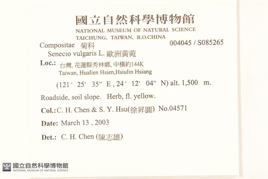 Collector:Chih-Hsiung Chen (陳志雄), & Sheng-Yuan Hsu (徐昇圓)