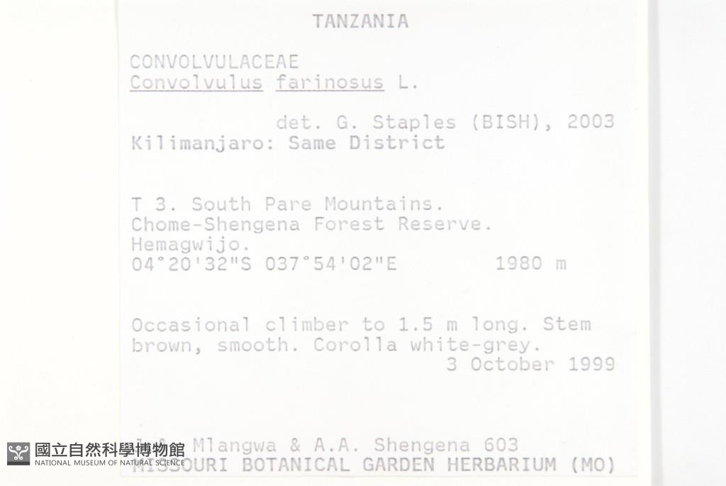 Locality:Tanzania、Kilimanjaro Same District. T3. South Pare Mountains.
