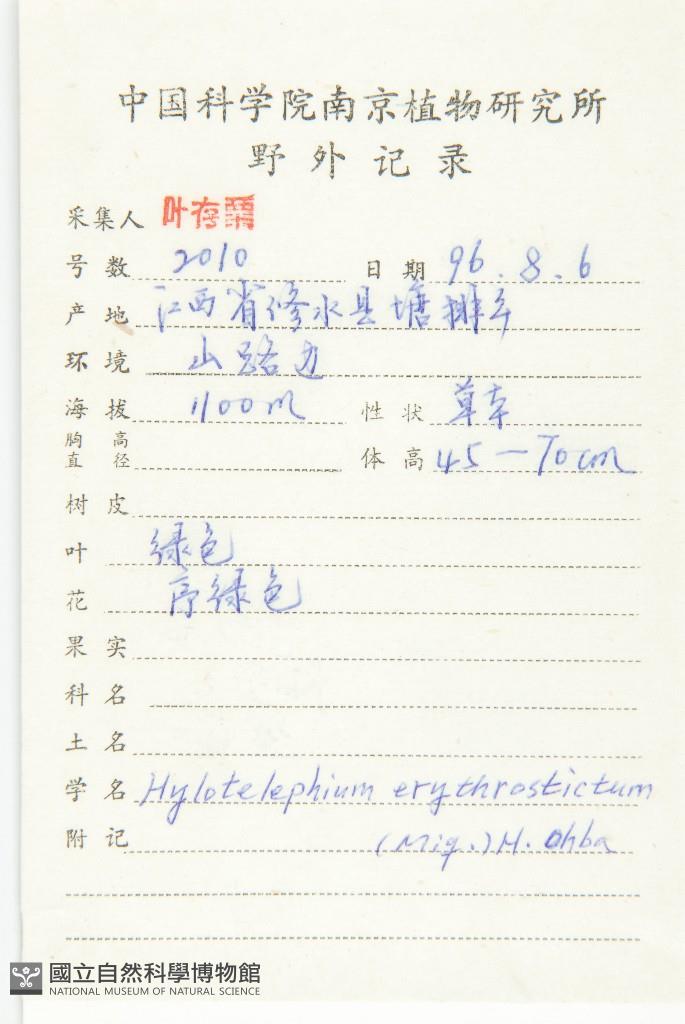 Collector:C. S. Ye(葉存粟)