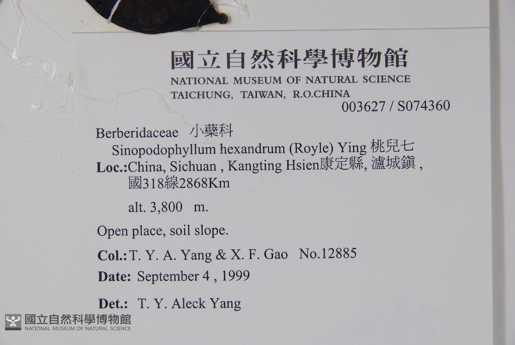 Scientific Name: Sinopodophyllum hexandrum (Royle) Ying