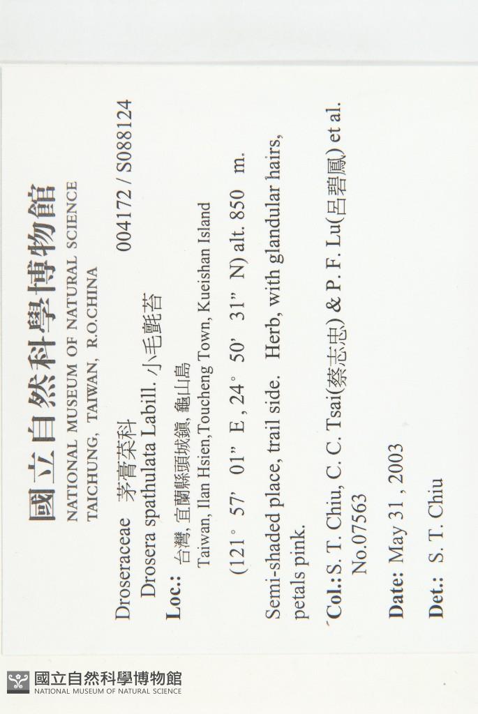 Collector:Shau-Ting Chiu (邱少婷), Chih-Chung Tsai (蔡志忠), Pi-Fong Lu (呂碧鳳) & al.
