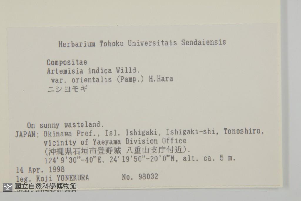 Scientific Name: Artemisia indica Willd. var. orientalis (Pamp.) H. Hara