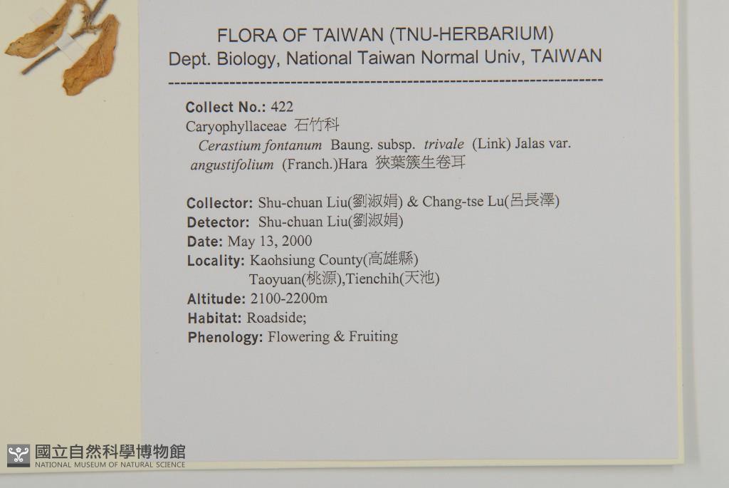 Scientific Name: Cerastium fontanum Baumg. subsp. triviale (Link.) Jalas var. angustifolium (Franch.) Hara