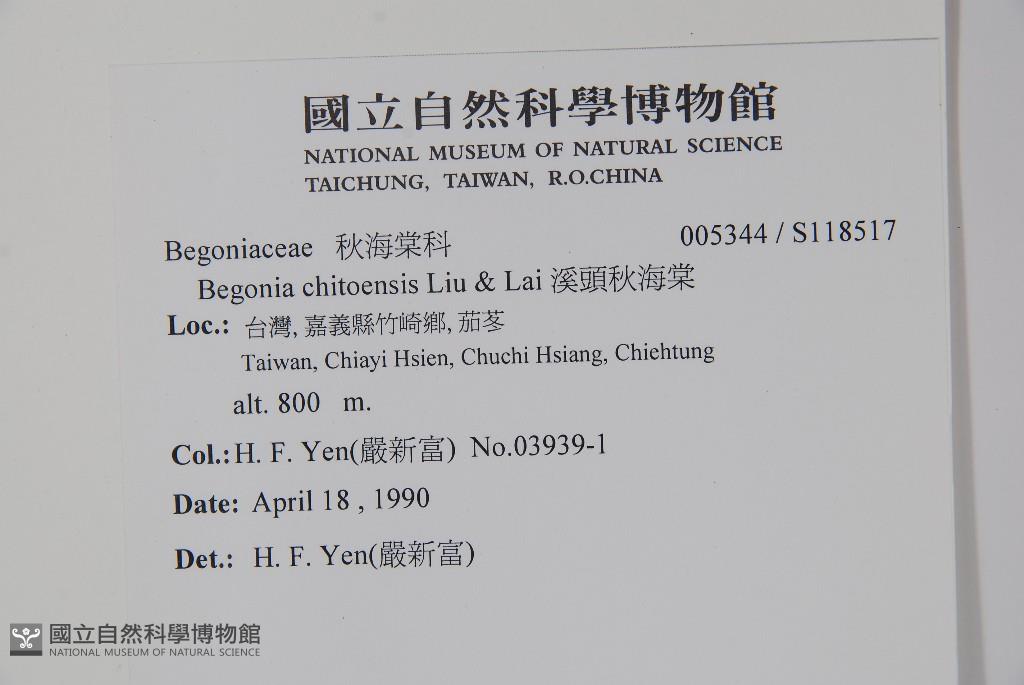 Scientific Name: Begonia chitoensis T.S.Liu & M.J.Lai