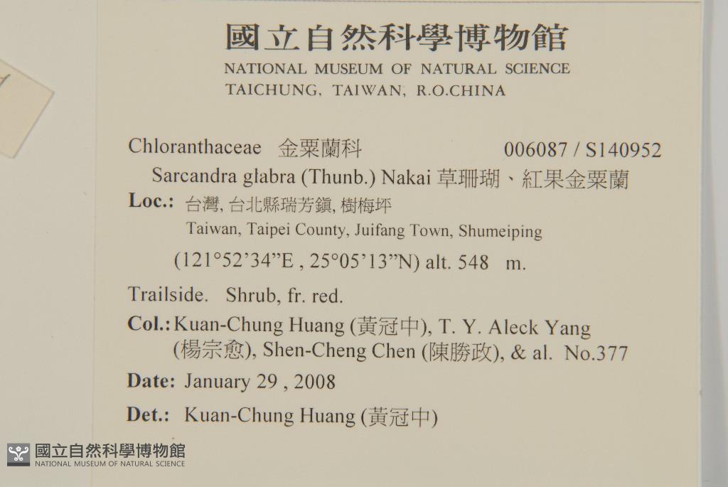Collector:Kuan-Chung Huang (黃冠中), T. Y. Aleck Yang (楊宗愈), Shen-Cheng Chen (陳勝政), & al.