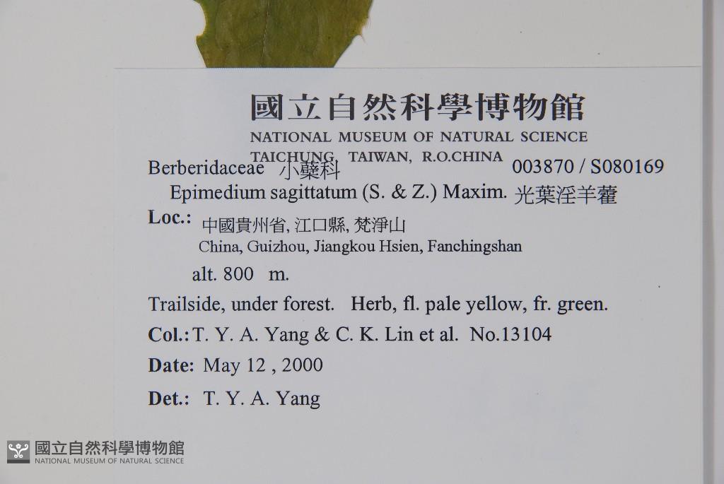 Scientific Name: Epimedium sagittatum (S. & Z.) Maxim.