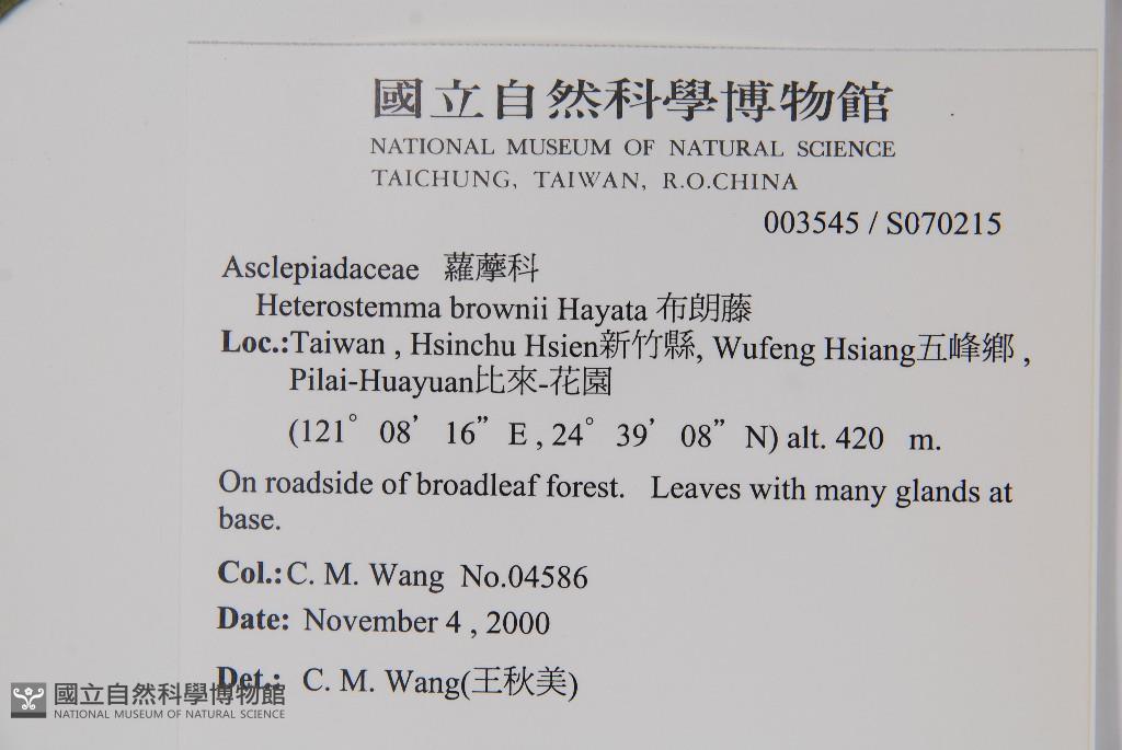 Scientific Name: Heterostemma brownii Hayata