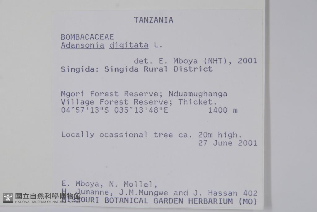 Collector:E. Mboya, N. Mollel, H. Jumanne, J. M. Mungwe and J. Hassan