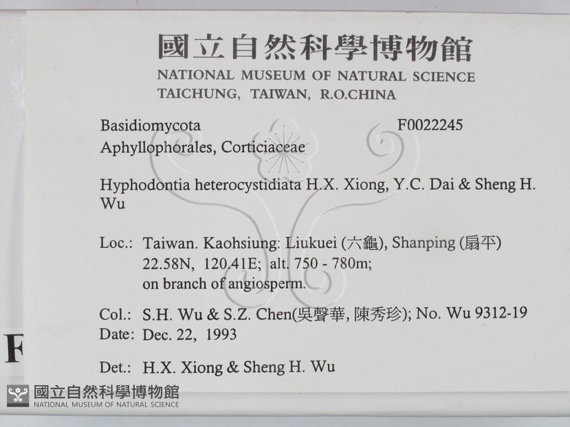 Hyphodontia heterocystidiata H.X. Xiong, Y.C. Dai & Sheng H. Wu