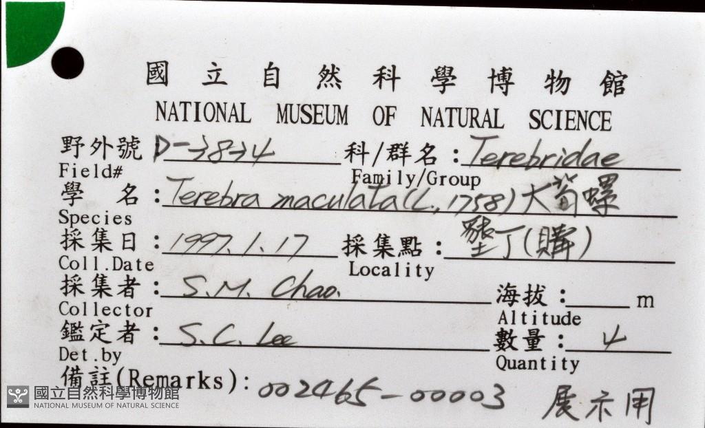TNM No./Catalog No.:002465-00003