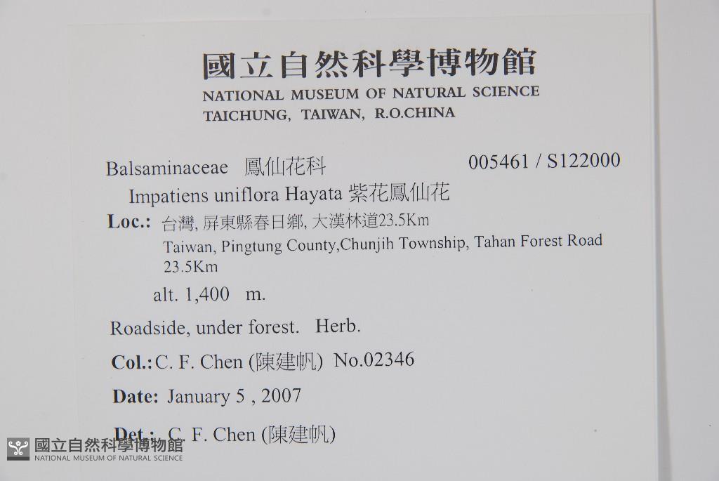 Scientific Name: Impatiens uniflora Hayata