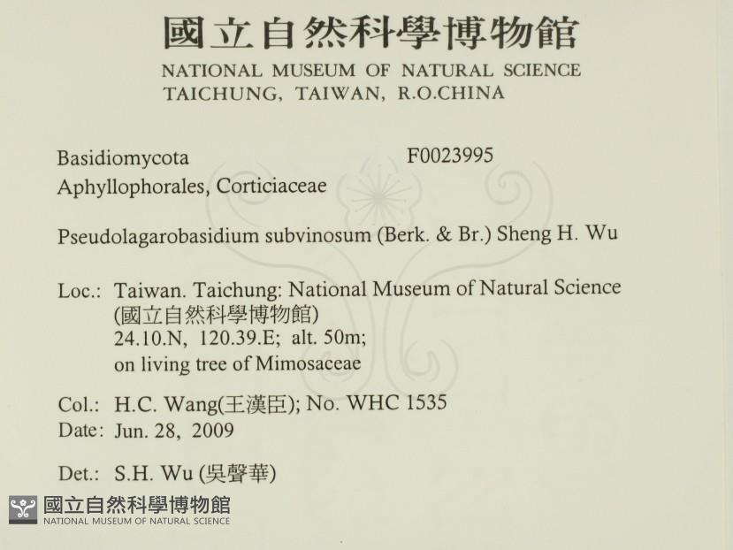 Pseudolagarobasidium subvinosum (Berk. & Br.) Sheng H. Wu