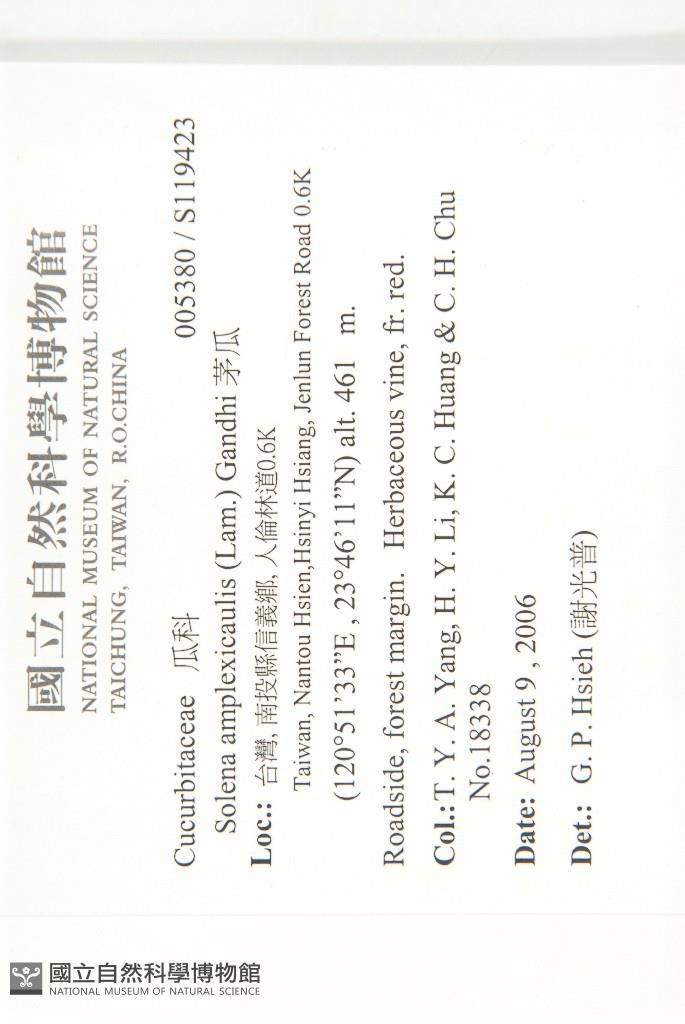 Collector:T. Y. A. Yang, H. Y. Li, K. C. Huang & C. H. Chu