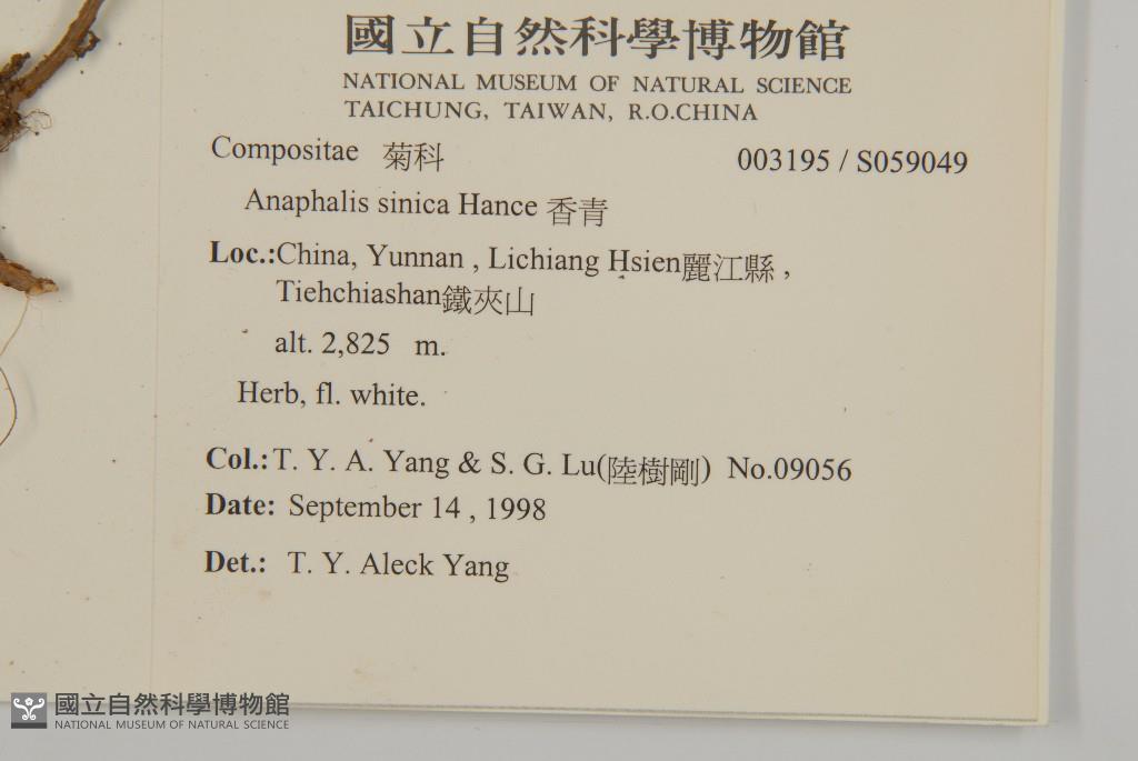 Collector:T. Y. A. Yang & S. G. Lu(陸樹剛)