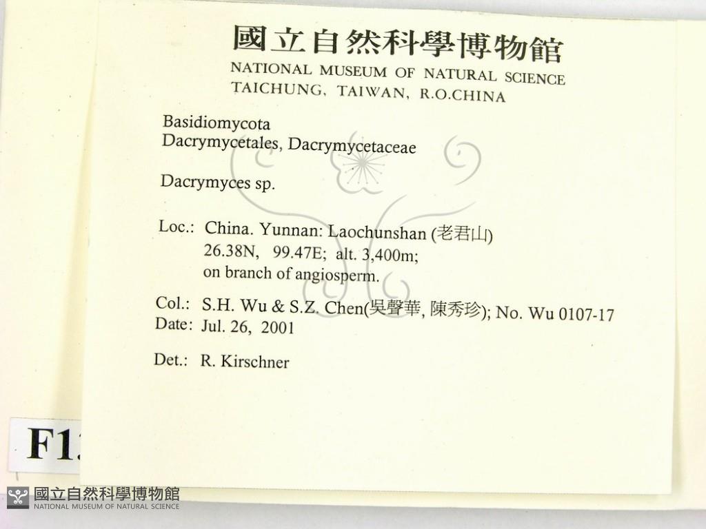 Phylum:Incertae sedis,Dacrymycetes ,Dacrymycetales ,Dacrymycetaceae