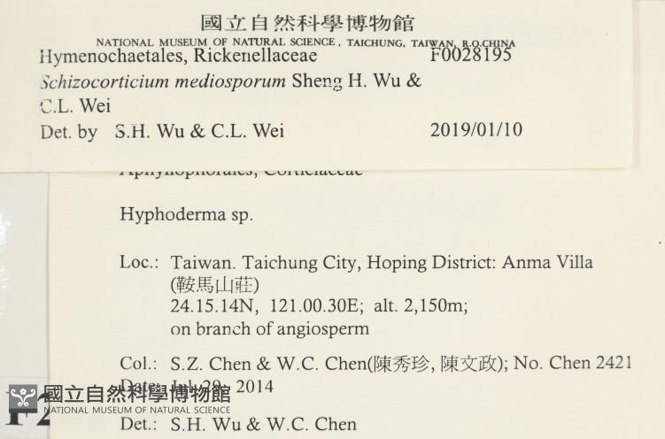 Schizocorticium mediosporum Sheng H. Wu & C.L. Wei