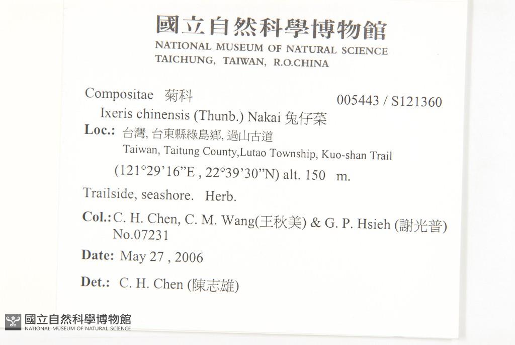 Collector:Chih-Hsiung Chen (陳志雄), Chiu-Mei Wang (王秋美), &Guang-Pu Hsieh (謝光普)