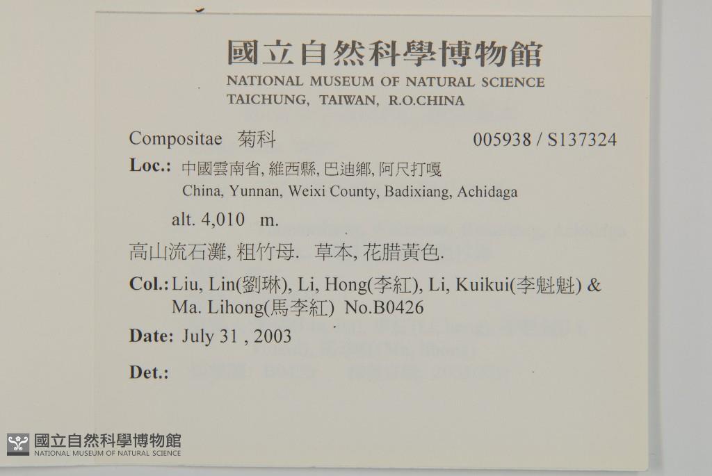 Collector:Lin Liu (劉琳), Hong Li (李紅), Kui-Kui Li (李魁魁) & Li-Hong Ma (馬李紅)