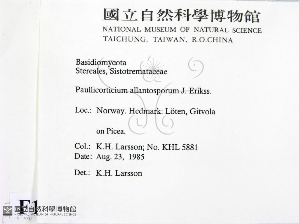 Paullicorticium allantosporum J. Erikss.