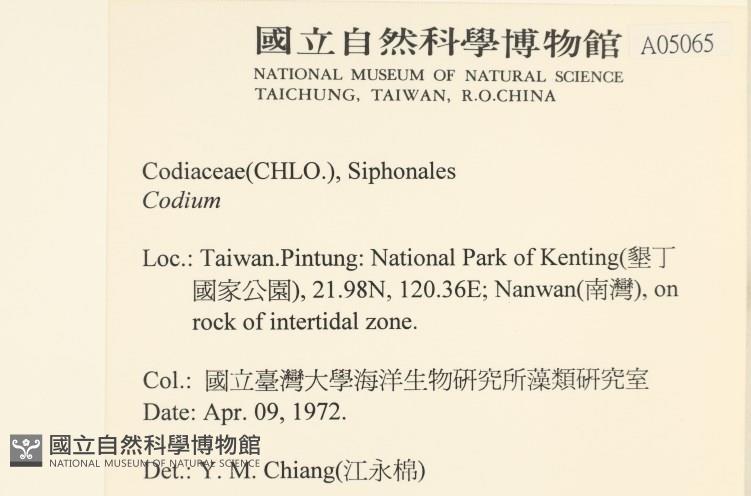 Collector:國立臺灣大學海洋生物研究所藻類研究室