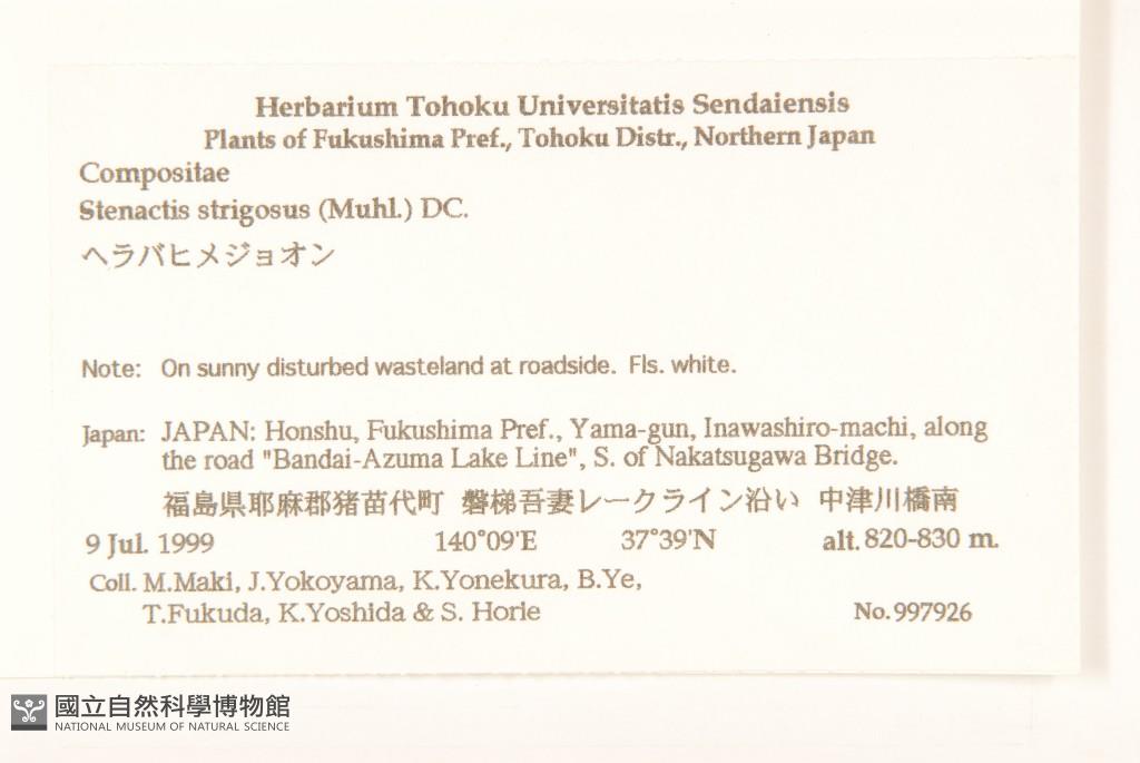 Collector:M. Maki, J. Yokoyama, K. Yonekura, B. Ye, T. Fukuda, K. Yoshida & S. H