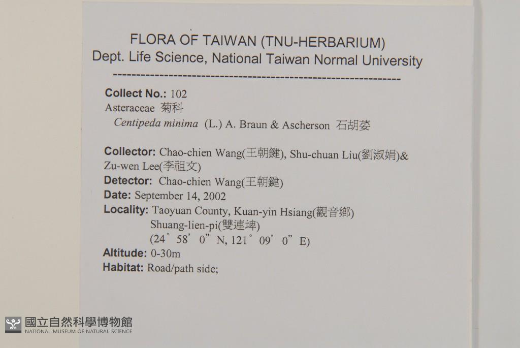 Collector:Chao-Chien Wang(王朝鍵), Shu-Chuan Liu(劉淑娟), & Zu-Wen Lee(李祖文)