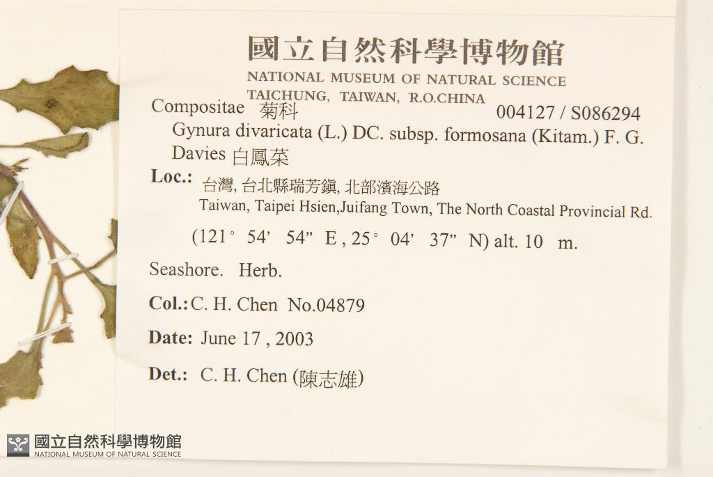 Scientific Name: Gynura divaricata (L.) DC. subsp. formosana (Kitam.) F. G. Davies