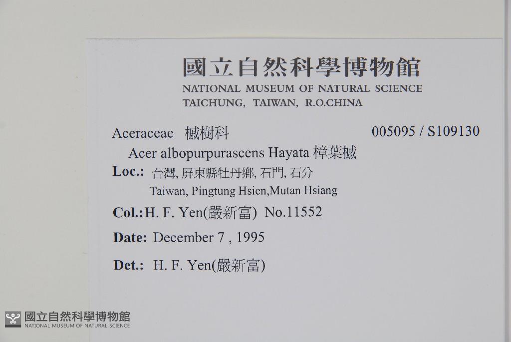 Scientific Name: Acer albopurpurascens Hayata