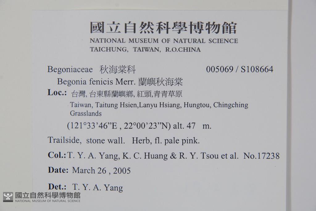Collector:T. Y. A. Yang, K. C. Huang & R. Y. Tsou et al.