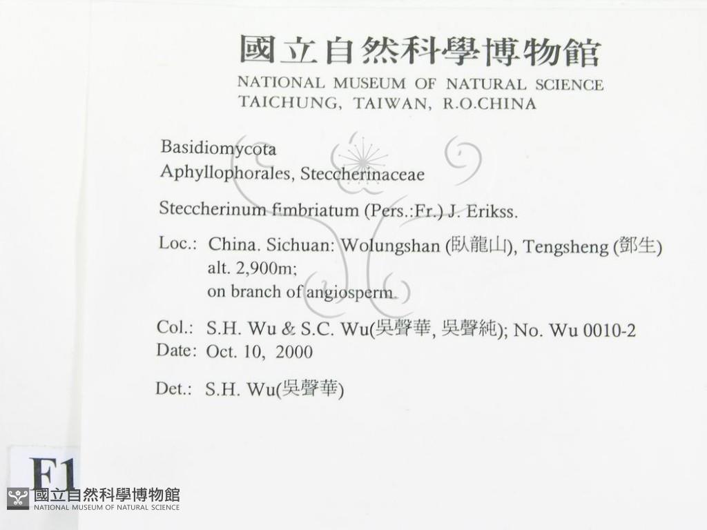 Phylum:Incertae sedis,Agaricomycetes ,Polyporales ,Steccherinaceae