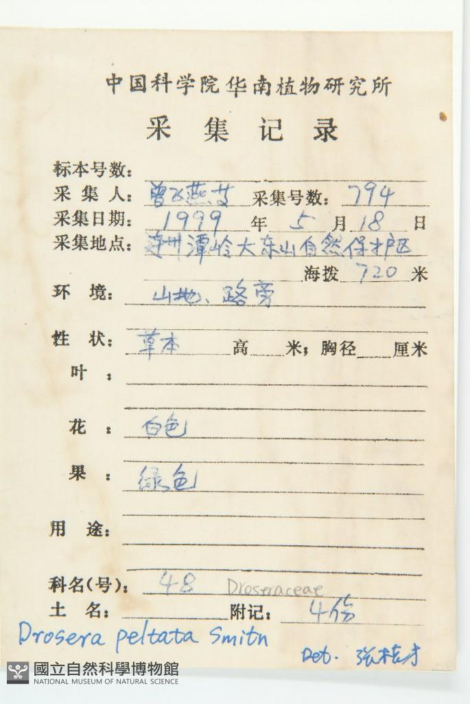 Scientific Name: Drosera peltata J. E. Smith