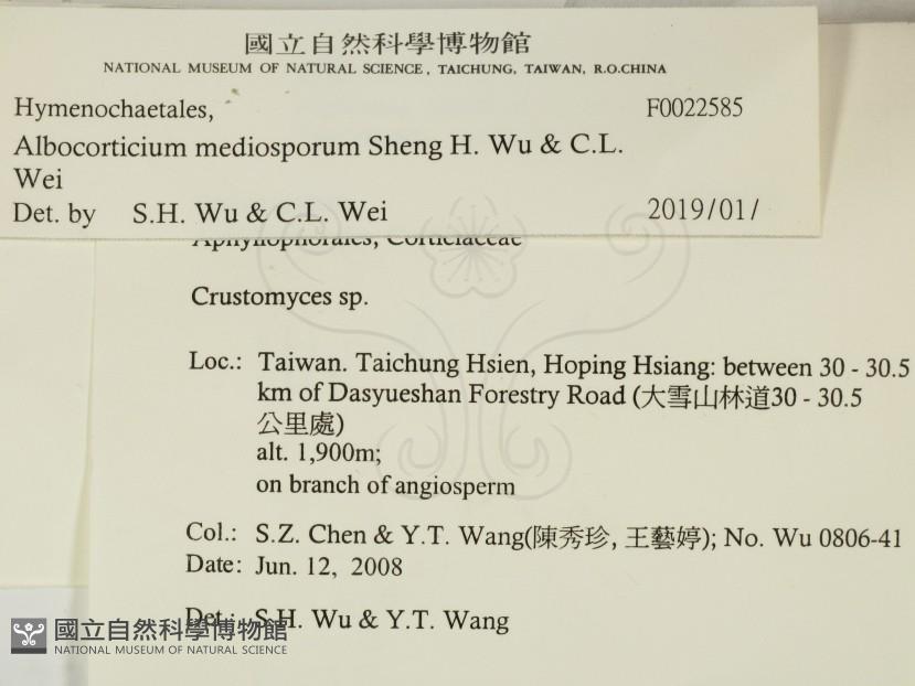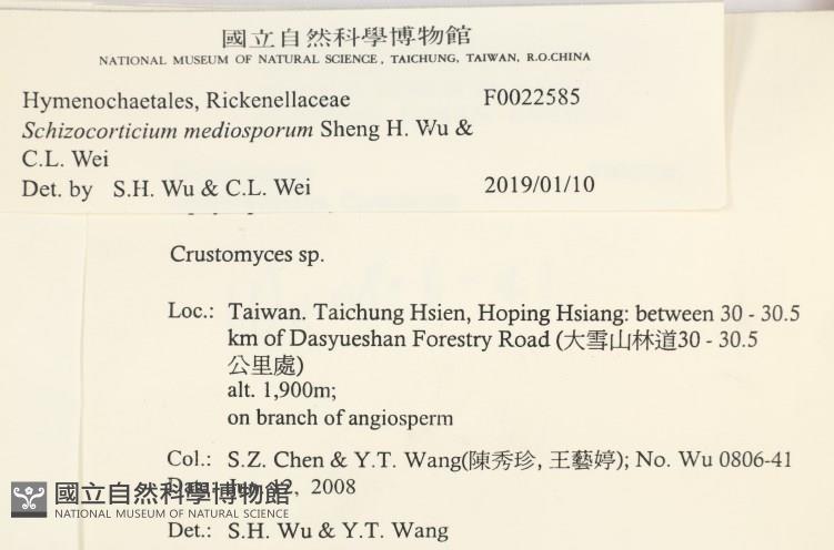 Schizocorticium mediosporum Sheng H. Wu & C.L. Wei