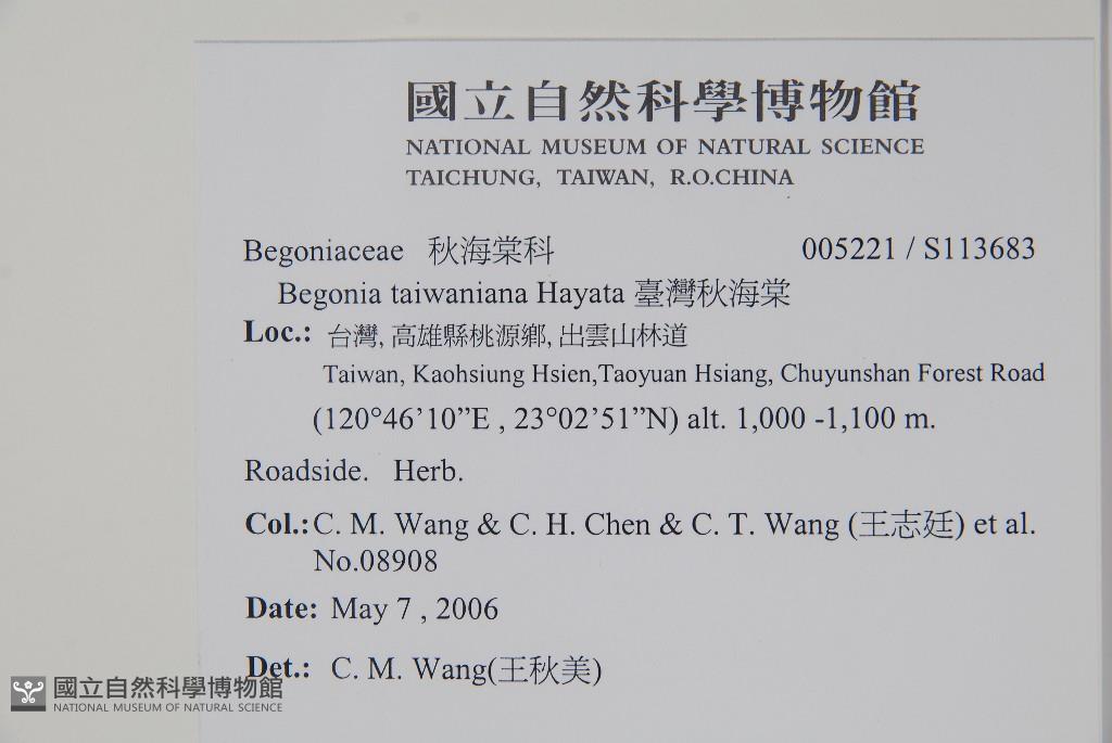 Collector:Chiu-Mei Wang (王秋美), & Chih-Hsiung Chen (陳志雄) & C. T. Wang (王志廷), & al.