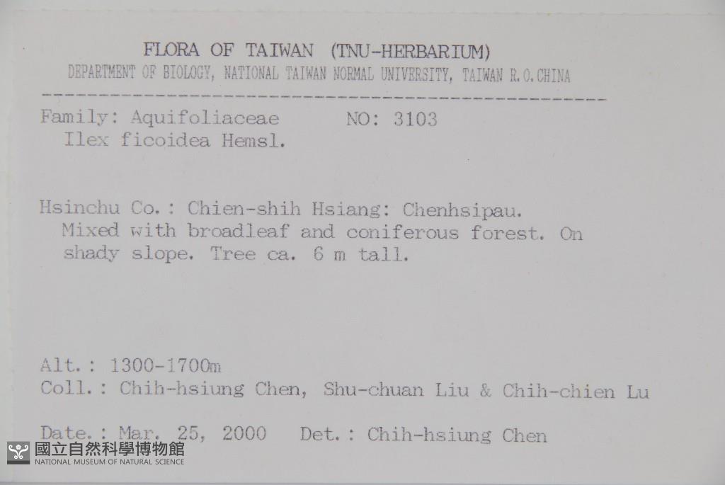 Scientific Name: Ilex ficoidea Hemsl.