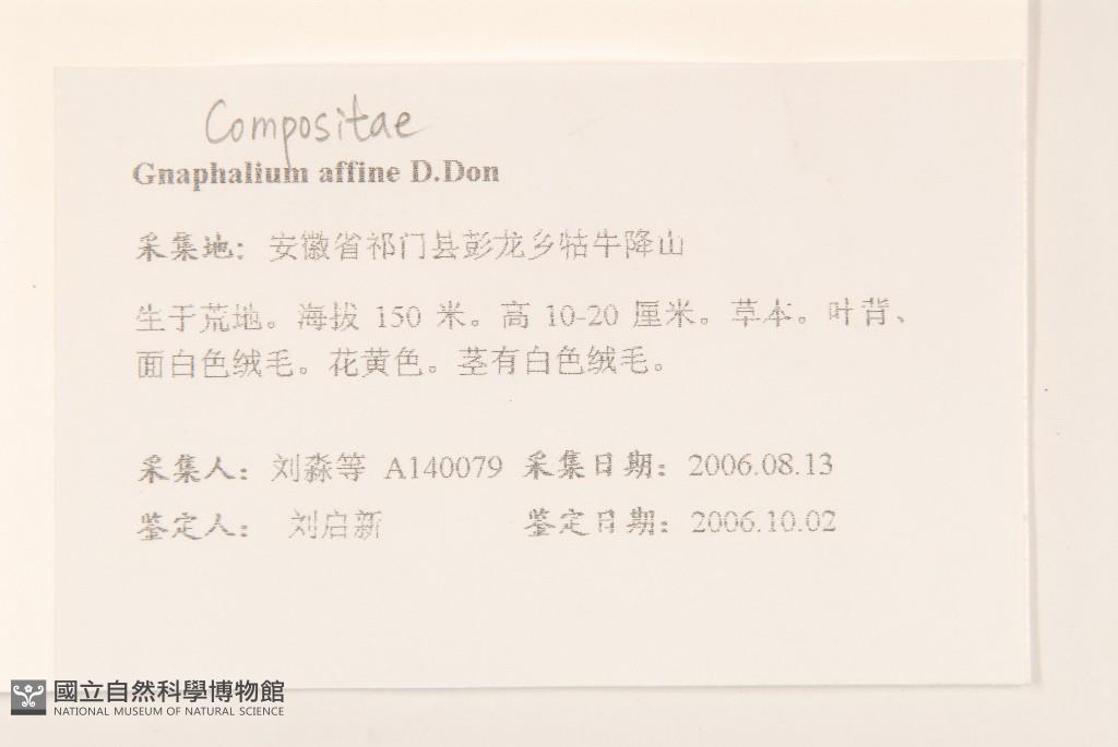 Scientific Name: Gnaphalium affine D. Don