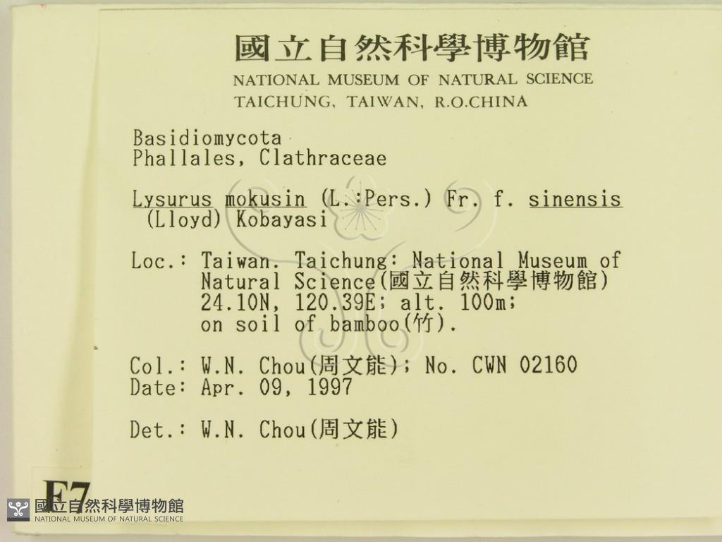 Lysurus mokusin (L.:Pers.) Fr. f. sinensis (Lloyd) Kobayasi