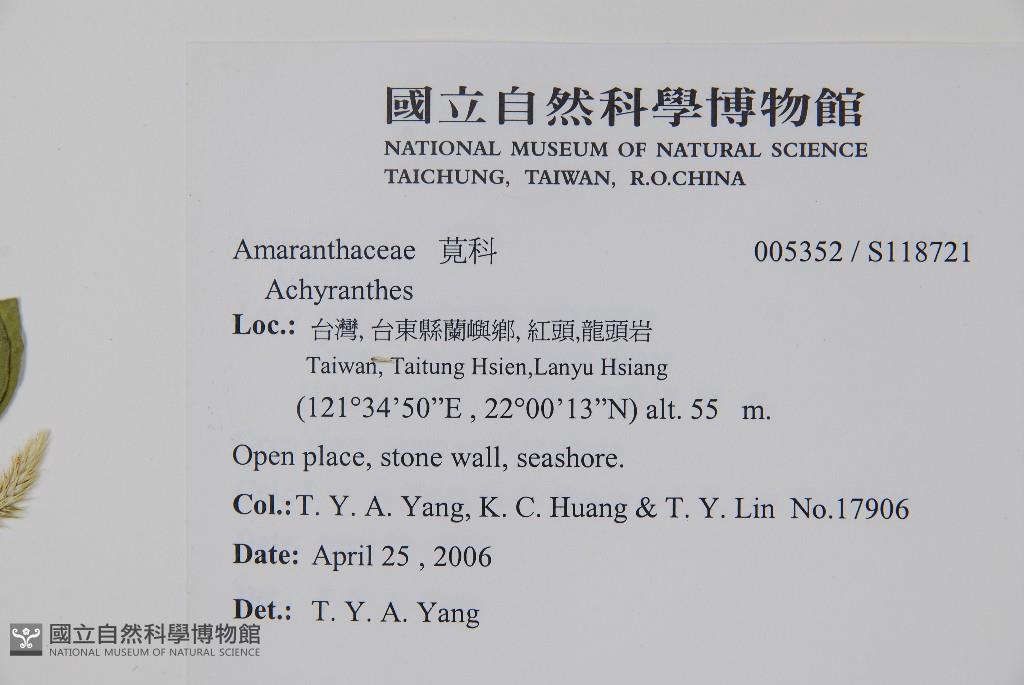 Collector:T. Y. A. Yang, K. C. Huang & T. Y. Lin