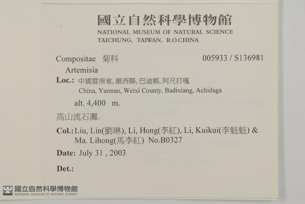 Collector:Lin Liu (劉琳), Hong Li (李紅), Kui-Kui Li (李魁魁) & Li-Hong Ma (馬李紅)