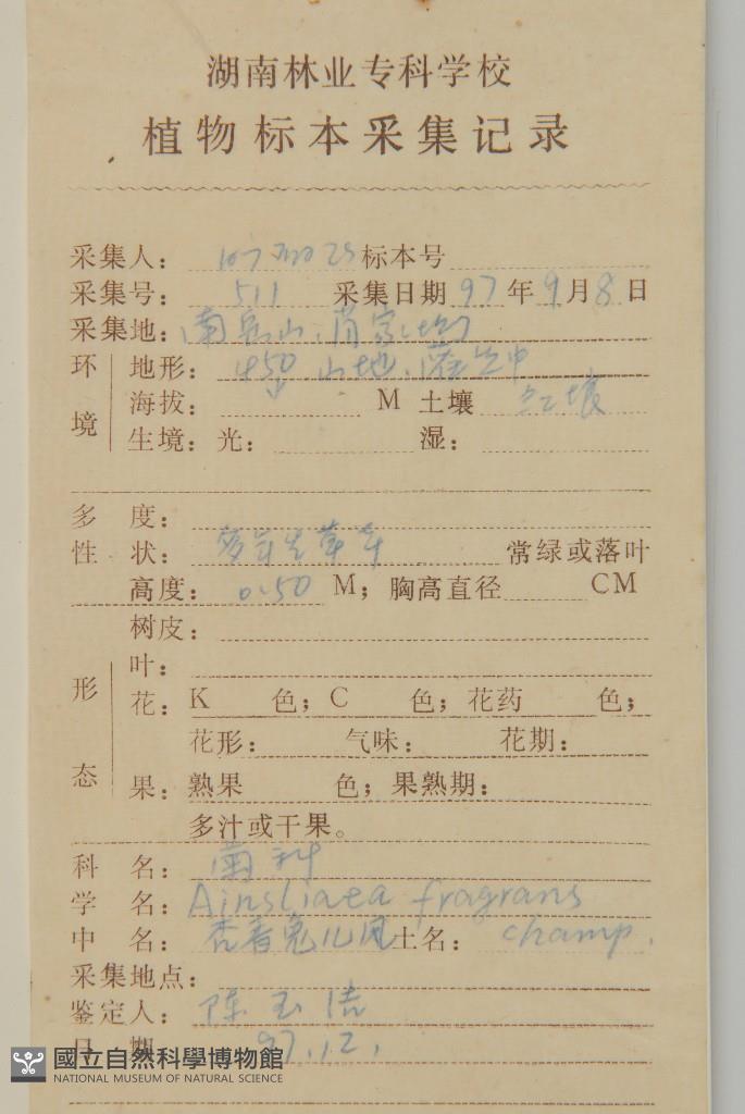 Scientific Name: Ainsliaea fragrans Champ.