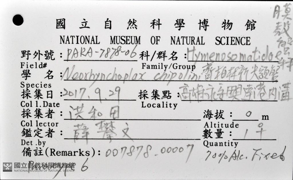 Scientific Name:Neorhynchoplax chipolini Hsueh,2018