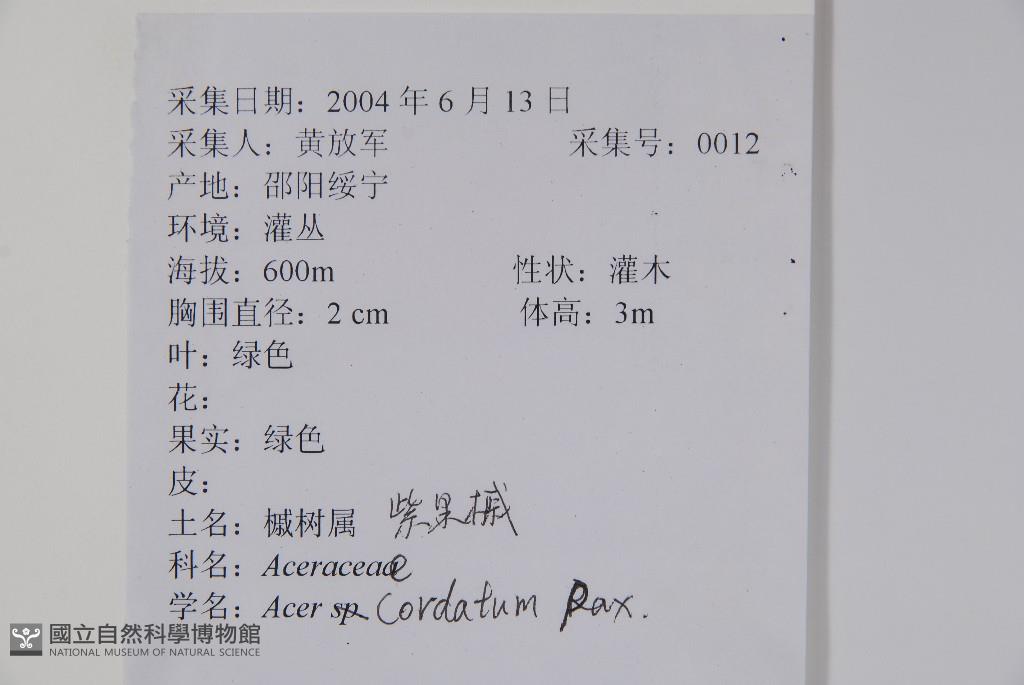 Scientific Name: Acer cordatum Pax