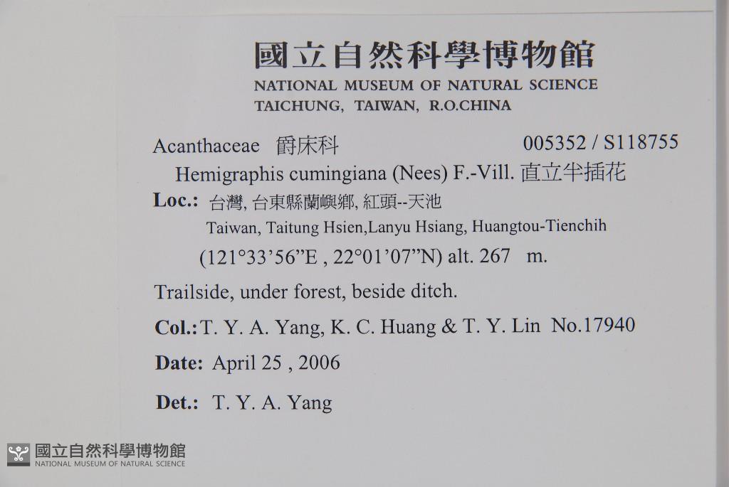 Collector:T. Y. A. Yang, K. C. Huang & T. Y. Lin