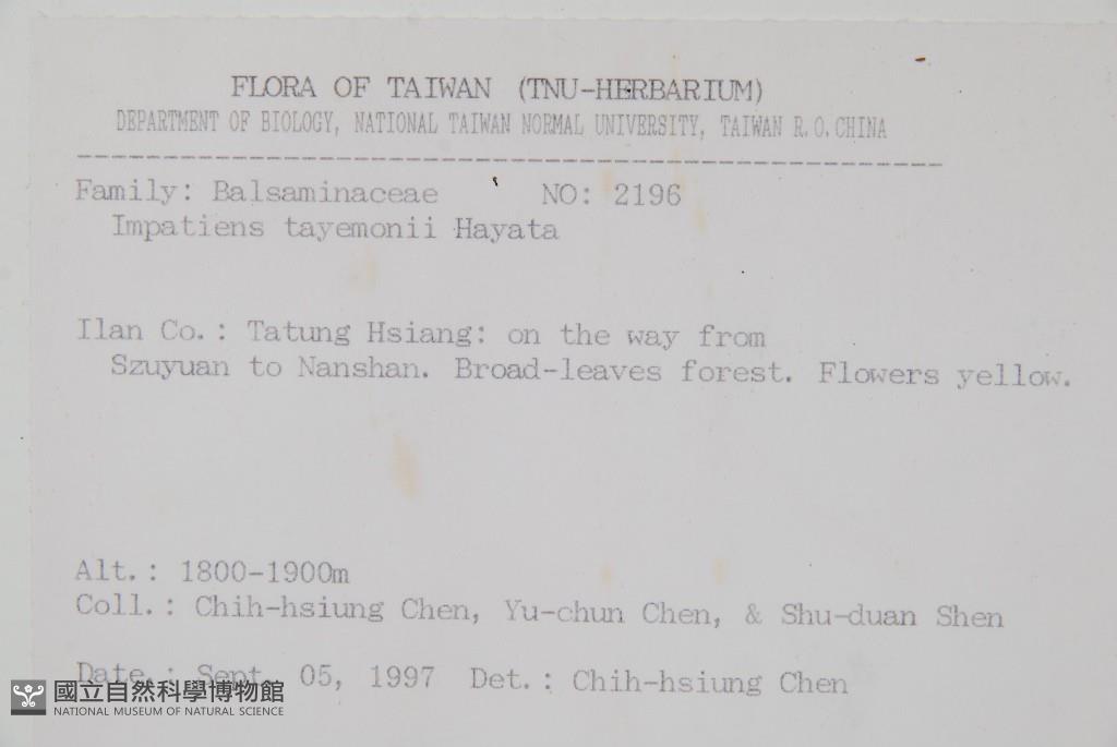 Scientific Name: Impatiens tayemonii Hayata