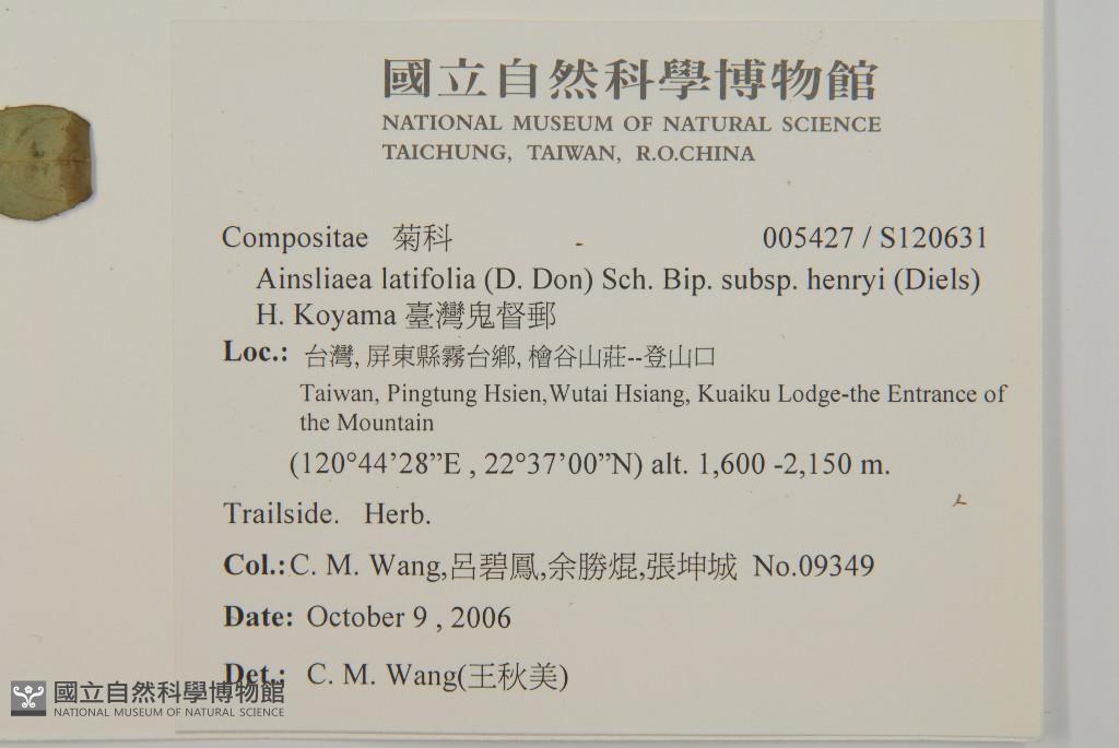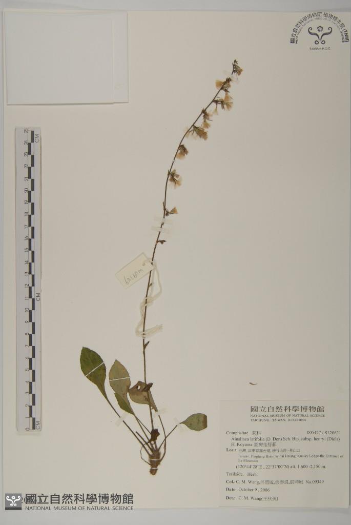 Scientific Name: Ainsliaea latifolia (D. Don) Sch. Bip. subsp. henryi (Diels) H. Koyama